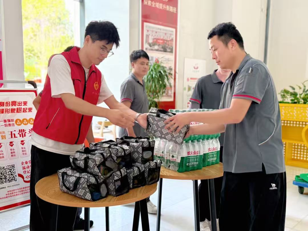 “師傅,天熱多補水!”在肥東縣榮電集團幸福驛站,幾名環(huán)衛(wèi)工人接過工作人員遞來的礦泉水,瓶身的涼意瞬間驅(qū)散了幾分暑氣。