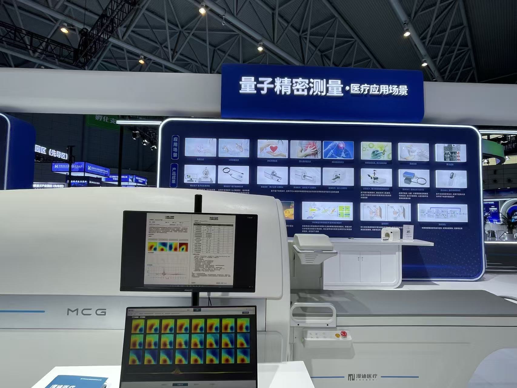 “量子+醫(yī)療”賽道上,量子生物磁技術(shù)憑借靈敏、無(wú)創(chuàng)、無(wú)輻射的優(yōu)勢(shì),成為疾病早期診斷的新利器。“系統(tǒng)高集成、無(wú)需液氦、使用便捷,通過(guò)捕捉心臟微弱的磁場(chǎng)信號(hào),達(dá)到冠心病早期篩查和診斷。”漫迪醫(yī)療胡家蕾介紹其公司展出的原子光泵量子心磁圖儀,該產(chǎn)品運(yùn)用原子光泵系列技術(shù),不用打針、不做造影,也不用擔(dān)心輻射問(wèn)題,幾分鐘時(shí)間即可完成心臟疾病的篩查。