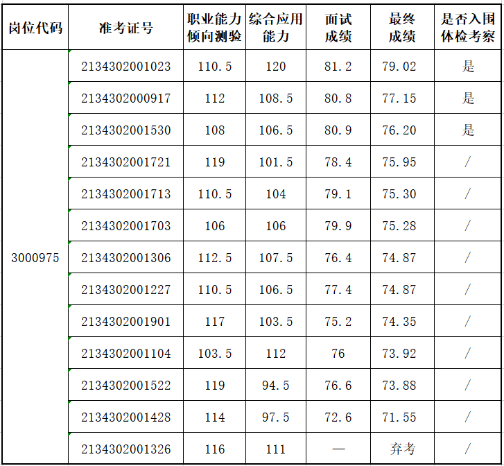 現(xiàn)將2023年江淮雜志社公開(kāi)招聘最終成績(jī)及進(jìn)入體檢人員名單公布如下: