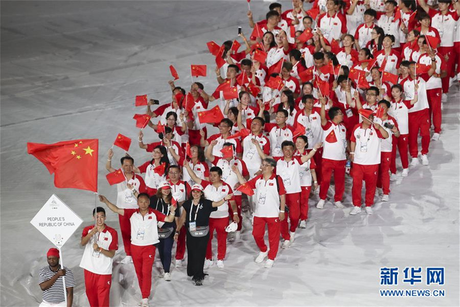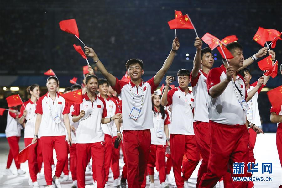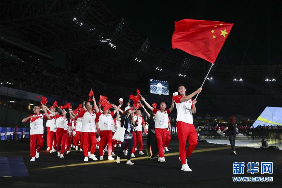 7月3日,中國大學(xué)生體育代表團在開幕式上入場。新華社記者鄭煥松攝