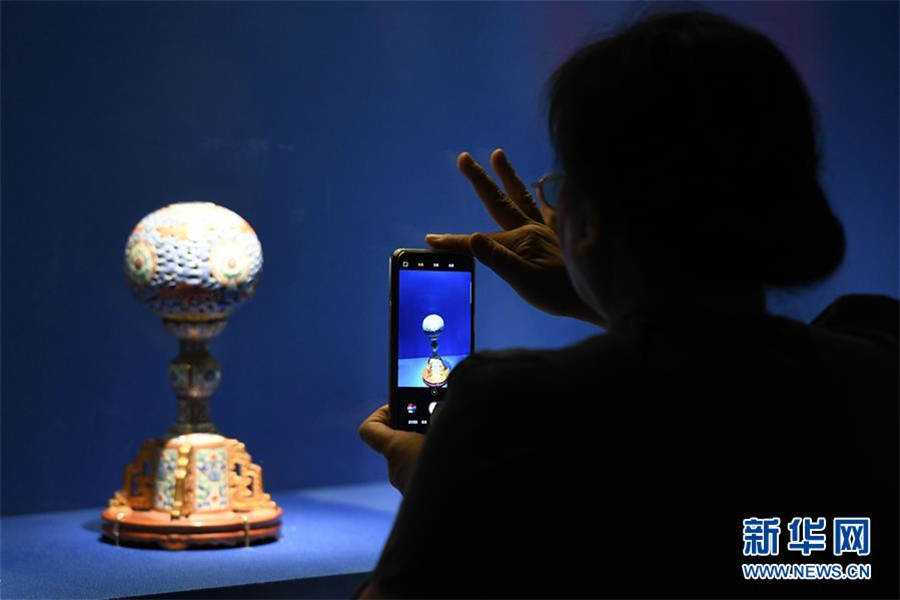 7月17日,觀眾在“故宮養(yǎng)心殿文物精品展”上拍攝展品。 7月16日,由安徽博物院和故宮博物院聯(lián)合舉辦的“故宮養(yǎng)心殿文物精品展”在位于合肥的安徽博物院新館開展。展覽共展出200余件(套)文物,將持續(xù)至10月16日。 新華社記者 張端 攝