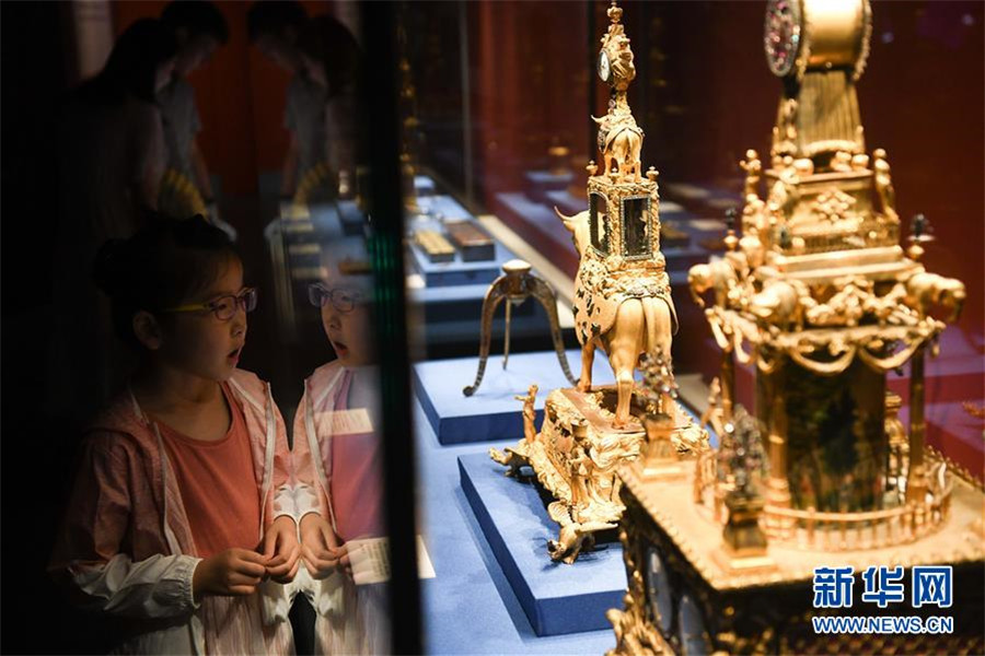 7月17日,小朋友在“故宮養(yǎng)心殿文物精品展”上參觀。 7月16日,由安徽博物院和故宮博物院聯(lián)合舉辦的“故宮養(yǎng)心殿文物精品展”在位于合肥的安徽博物院新館開展。展覽共展出200余件(套)文物,將持續(xù)至10月16日。 新華社記者 張端 攝