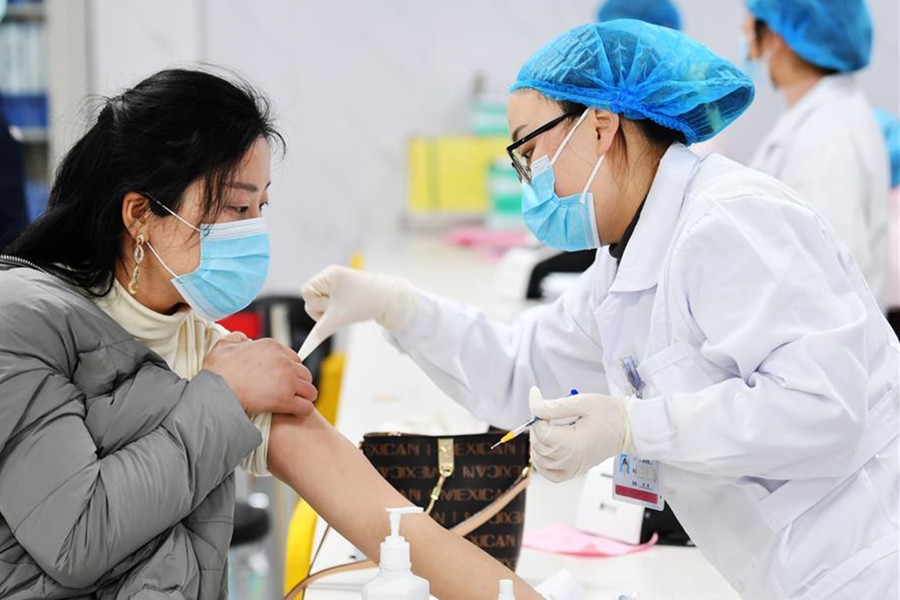 1月11日,合肥市肥東縣店埠鎮中心衛生院,來自全縣范圍內的特殊工作人員在接種新冠肺炎疫苗。連日來,肥東縣境內物流、冷鏈、教師、行政等需要接觸大量人群的特殊工作人員,陸續免費接種新冠肺炎疫苗,截至目前接種人數已達8000人,根據摸底數據,疫苗接種人數已近半。