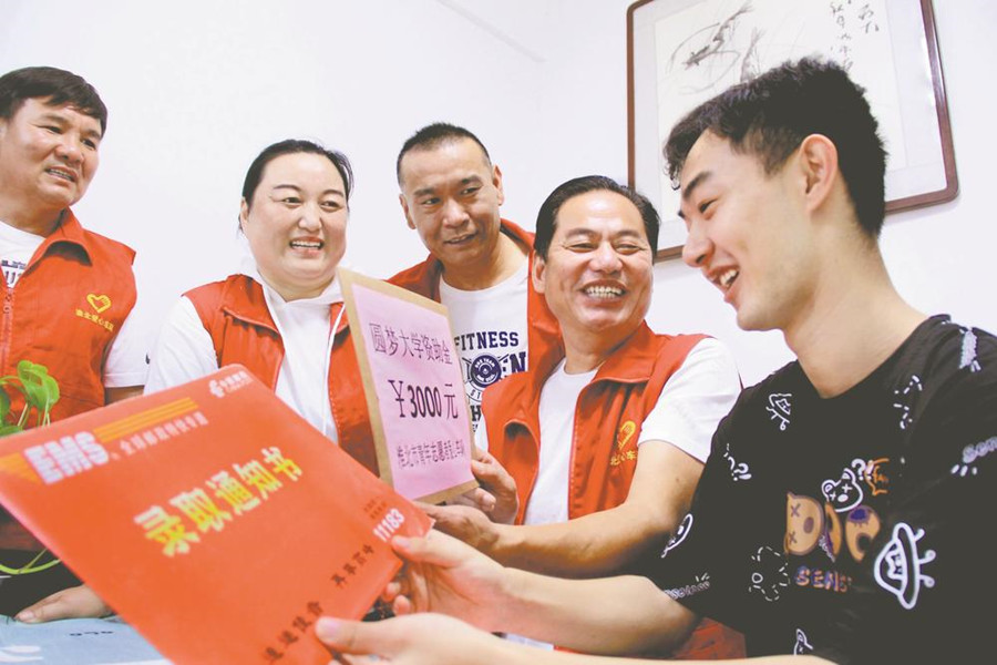 8月15日,淮北市青年志愿者愛心車隊開展“愛心匯聚開學季 資助困難學子圓夢大學”活動,為符合資助條件的大學新生送去助學金。今年是他們連續第14年參加“圓夢大學”愛心活動,累計資助131名大學生。 通訊員 周方玲 攝