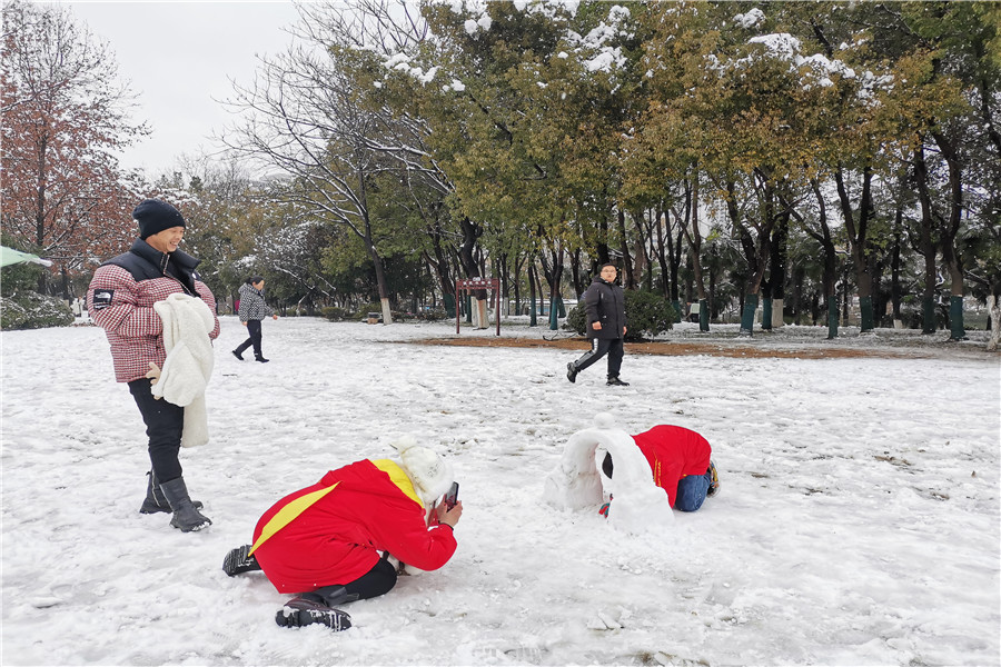 本網(wǎng)訊(記者 史洪芳)2月7日,虎年正月初七,合肥大雪紛飛。逍遙津公園、包公園一派銀裝素裹,廣大市民紛紛走出家門,和親朋好友在公園觀賞如畫雪景,堆雪人、打雪仗、滾雪球……熱鬧非凡,很多人用手機(jī)拍照片或短視頻留下對(duì)雪的美好記憶。
