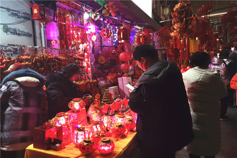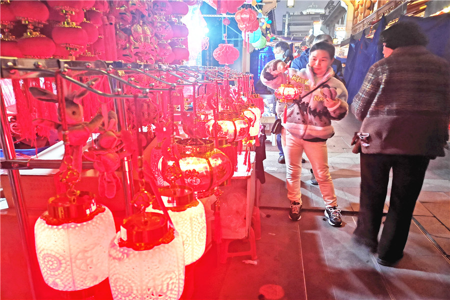 另一邊,合肥市城隍廟商業街上掛滿了各式各樣的燈籠,前往選購的市民絡繹不絕,把熱鬧的節日氣氛帶回家。