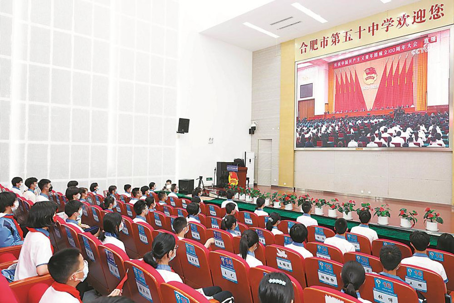5月10日上午,合肥市蜀山區筆架山街道團工委聯合合肥市五十中新校團委,組織該校共青團員觀看慶祝中國共產主義青年團成立100周年大會直播,并通過重溫入團誓詞、唱團歌等形式激發廣大共青團員刻苦學習、艱苦奮斗的責任感和使命感。