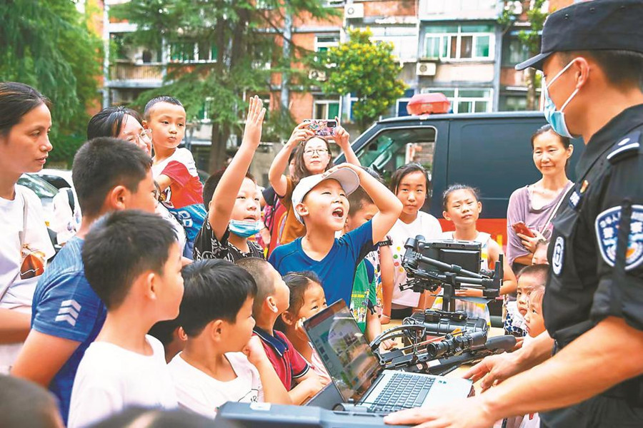 6月28日,合肥市公安局特警支隊黑豹突擊隊隊員現場播放未成年人保護宣傳片,用提問的方式向小學生宣講未成年人保護法中關于“家庭保護”“防拐防騙”等相關內容,教導小學生在遇到危險情況時及時向警察叔叔求助。合肥市廬陽區逍遙津街道四牌樓社區黨委聯合市公安局黑豹突擊隊等單位,在轄區開展“保護未成年人權利,助力青少年健康成長”主題宣傳活動。