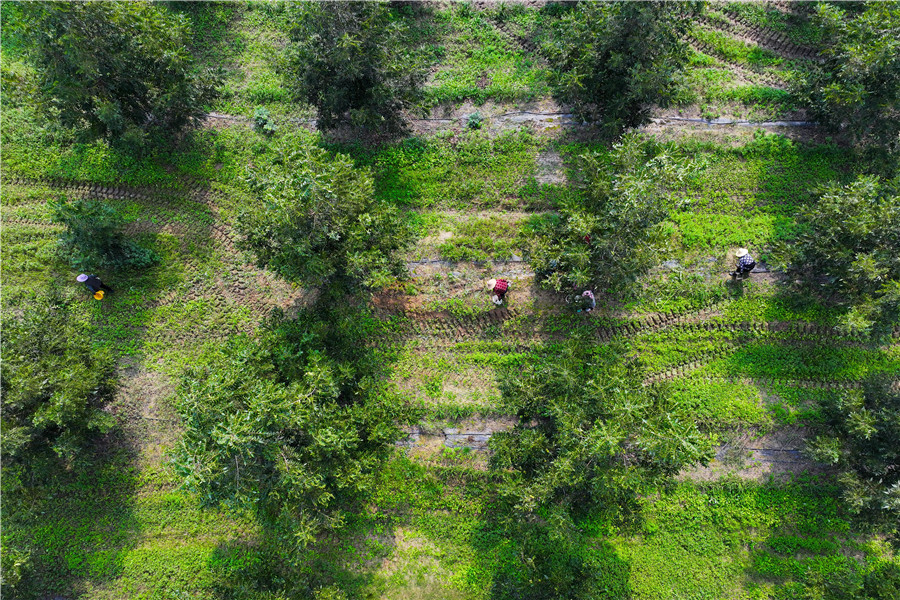 日前,肥西縣官亭鎮佳燁碧根果產業園里,農戶正采收碧根果。當地種植碧根果面積達1.3萬畝,年產量達400噸。(通訊員 陳家樂 攝)