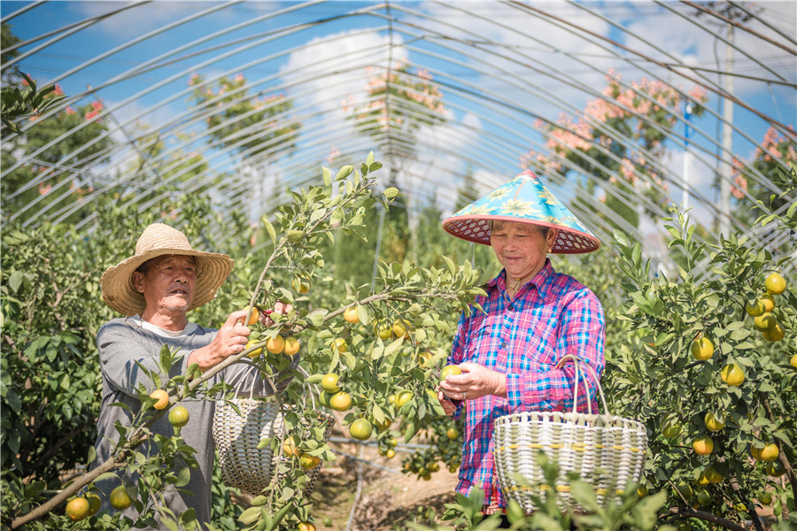 日前,在來安縣張山鎮果殖鮮農業發展有限公司800余畝果園內,果農正忙著采摘水果。(通訊員 呂 華 攝)
