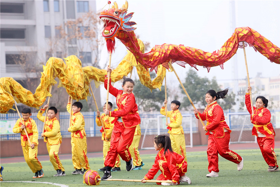 12月29日,合肥市蚌埠路第二小學在校園舉行“舞龍迎新年”主題活動。學生們通過舞龍表演,感受中華傳統(tǒng)文化,迎接新年到來。