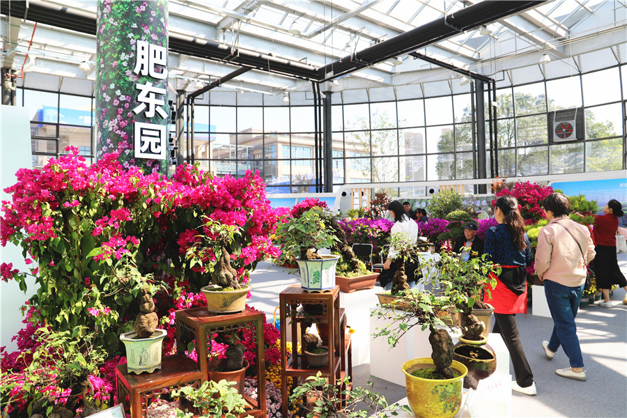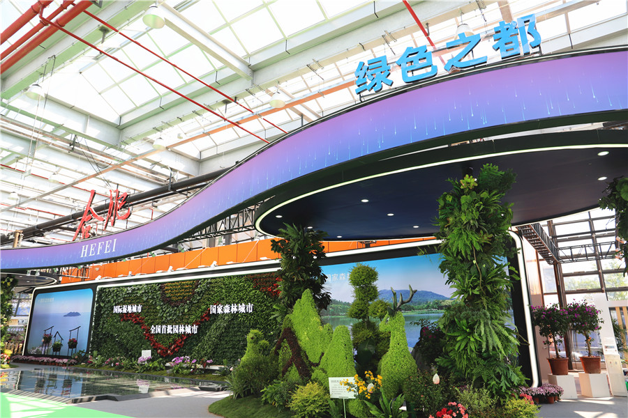 花樣合肥,綠色之都。合肥展館內,“花開滿城 香飄合肥“單元布展以花為主,展現繁花似景、美麗花都的幸福底色。“宜居宜業綠色之都”單元集中展示合肥引種應用的新、優、精品苗木品種應用場景。“創新創未來”單元布展以大型垂直綠化植物墻、家庭園藝創意花盆、新品種、網紅熱植以微景觀形式展現,表達新技術、新理念、新產品的市場需求及應用。