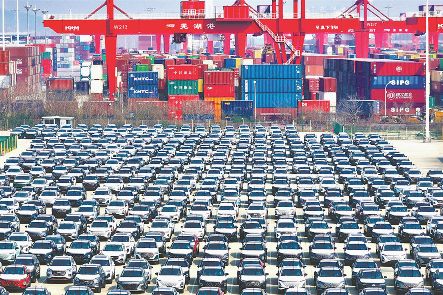 3月10日,安徽港口集團蕪湖港朱家橋港區,即將出口海外的奇瑞汽車整齊停放在貨場上。奇瑞集團1月至2月累計銷售汽車348019輛,同比增長69.5%,保持了今年以來“開跑即沖刺”的強勁勢頭。
