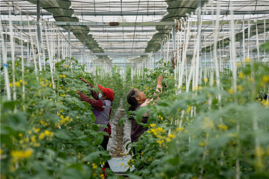 5月5日,正值立夏,合肥市廬陽區大楊鎮崗西村,菜農在管護甜瓜、西紅柿。通訊員 阮雪楓 攝