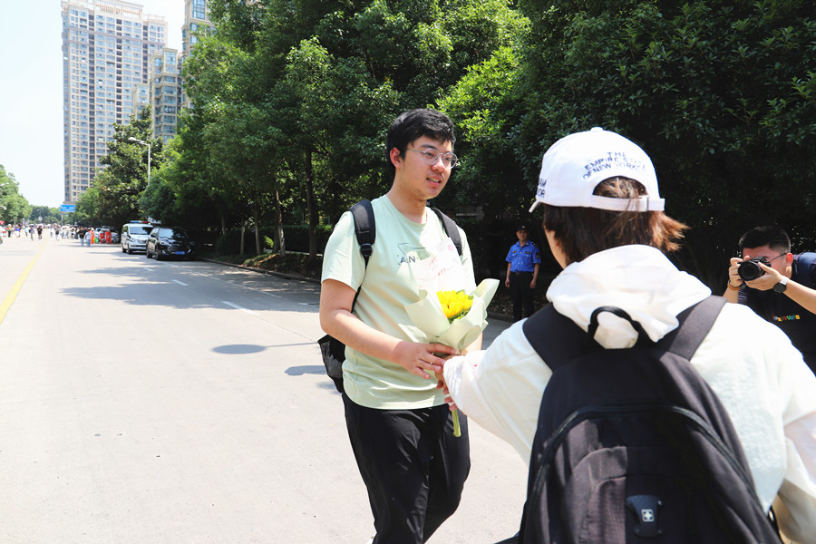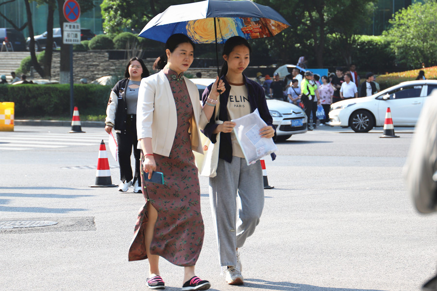 合肥八中考點,家長將考生送到考場。