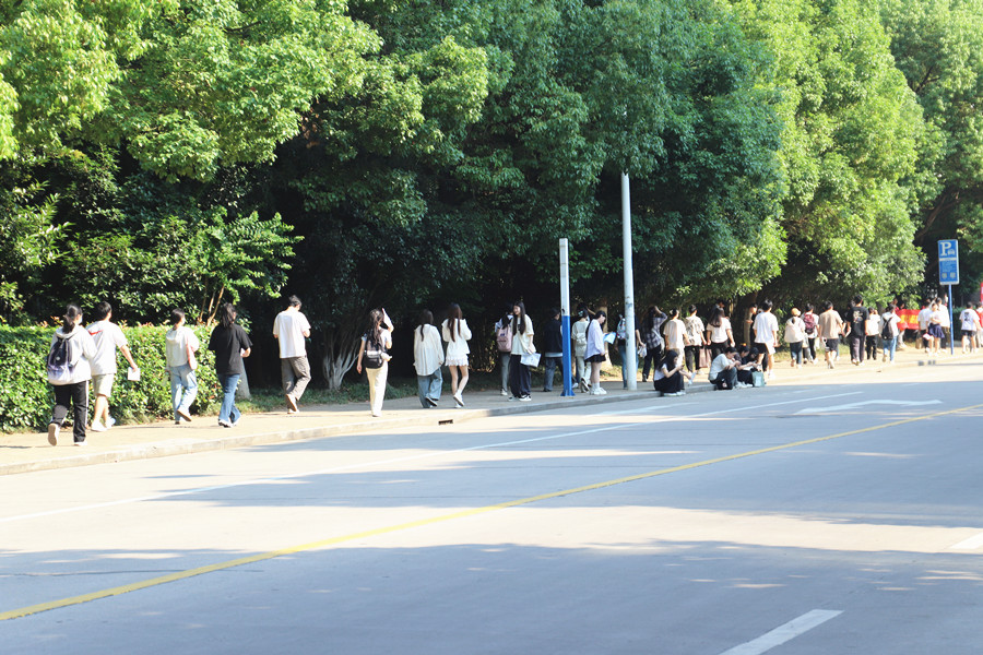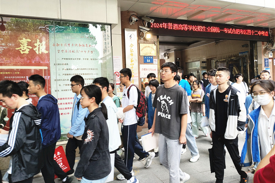 合肥四十二中考點,語文考試結束后,考生們陸續走出考場。