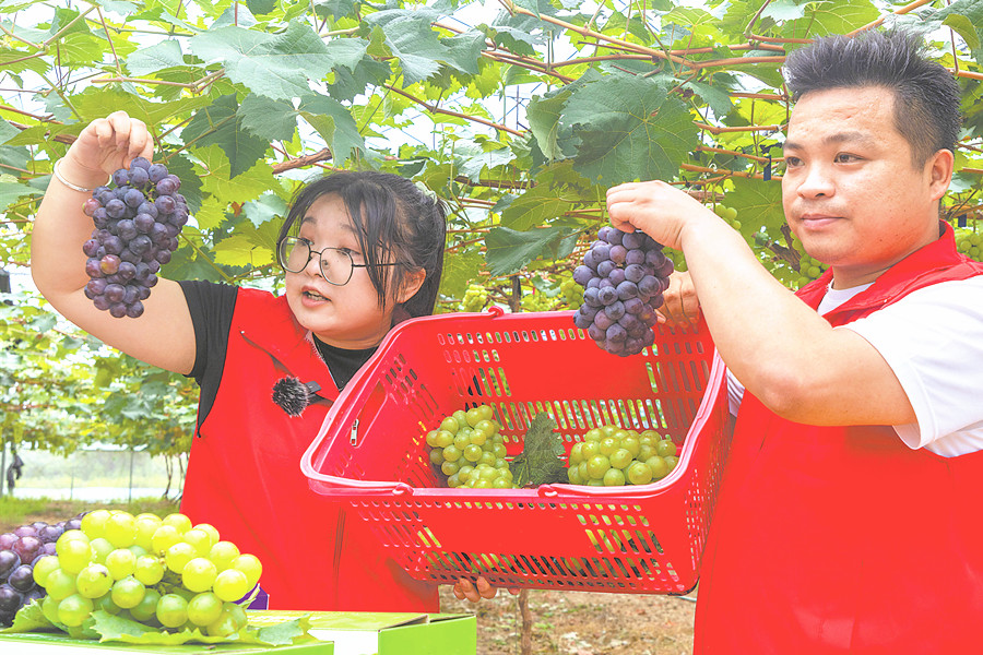 6月27日,在望江縣賽口鎮金賽葡萄園,黨員志愿者利用直播向網友介紹優質葡萄。近年來,賽口鎮黨委探索“特色產業+鄉村人才+電商”模式,組織黨員志愿者開展電商直播,幫助農民及時銷售農產品。