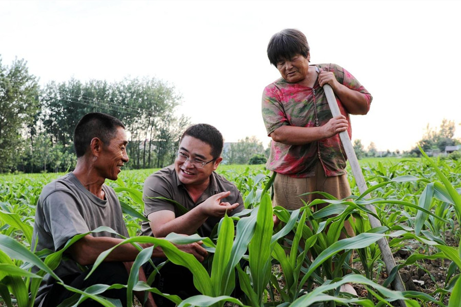 日前,科技特派員(中)在阜陽市潁東區(qū)向陽村為農(nóng)民進(jìn)行玉米田管技術(shù)指導(dǎo)。連日來,潁東區(qū)組織100多名科技特派員深入田間地頭,面對(duì)面向農(nóng)民傳授在地作物病蟲害防治等田管知識(shí)。通訊員 宿 飛 張 煜 攝