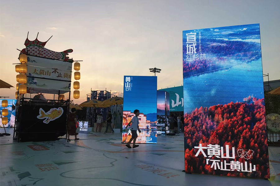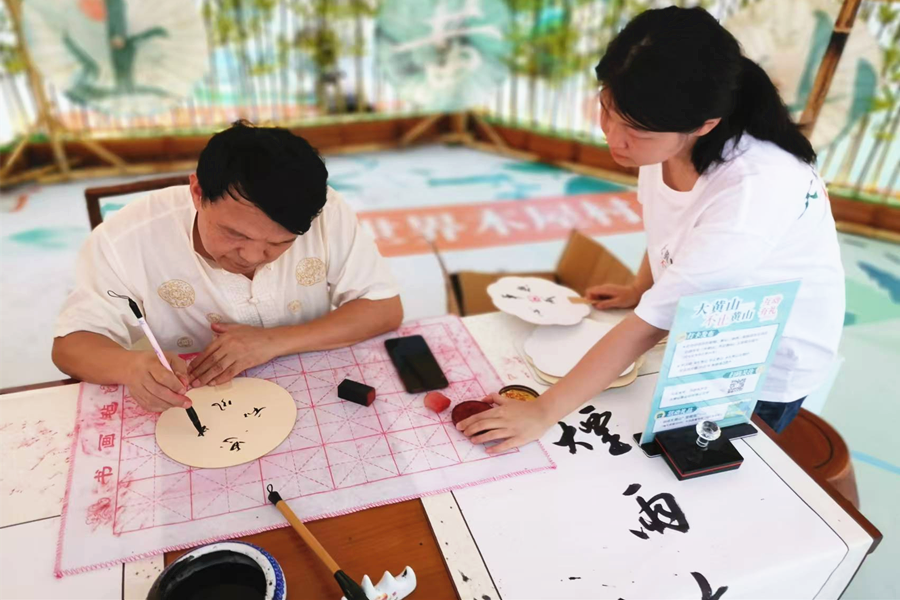 活動現場以大黃山為核心,通過沉浸式文化活動,展示了大黃山獨特的自然景觀與深厚的文化底蘊,觀眾們也體驗了徽州魚燈、宣紙扇等不同的非遺項目,感受大黃山的風土人情。