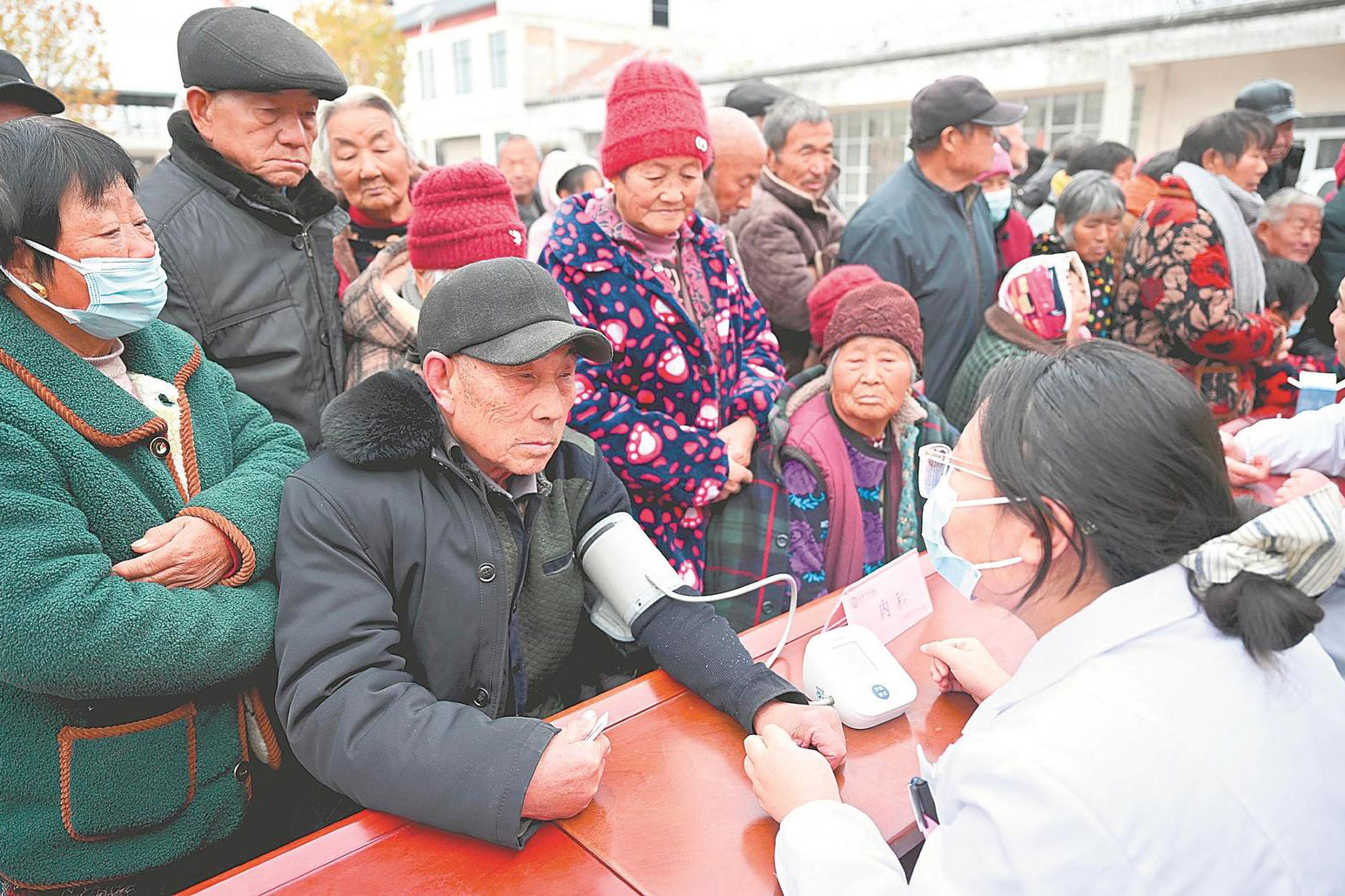 12月9日,亳州市譙城區(qū)大楊鎮(zhèn)丁固村駐村工作隊聯(lián)合亳州市中醫(yī)院開展義診活動,醫(yī)務人員免費提供健康檢查、測量血壓等服務。通訊員 劉勤利 攝