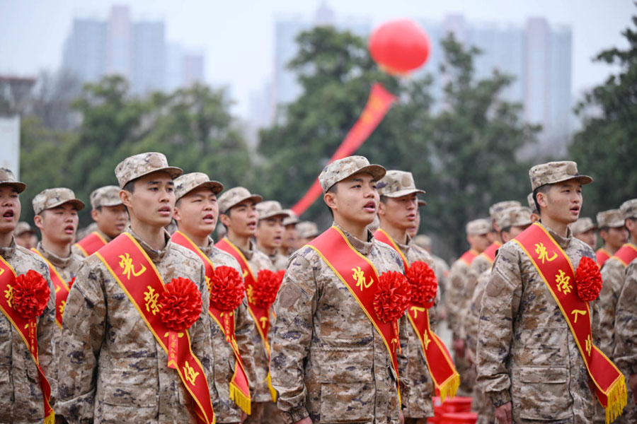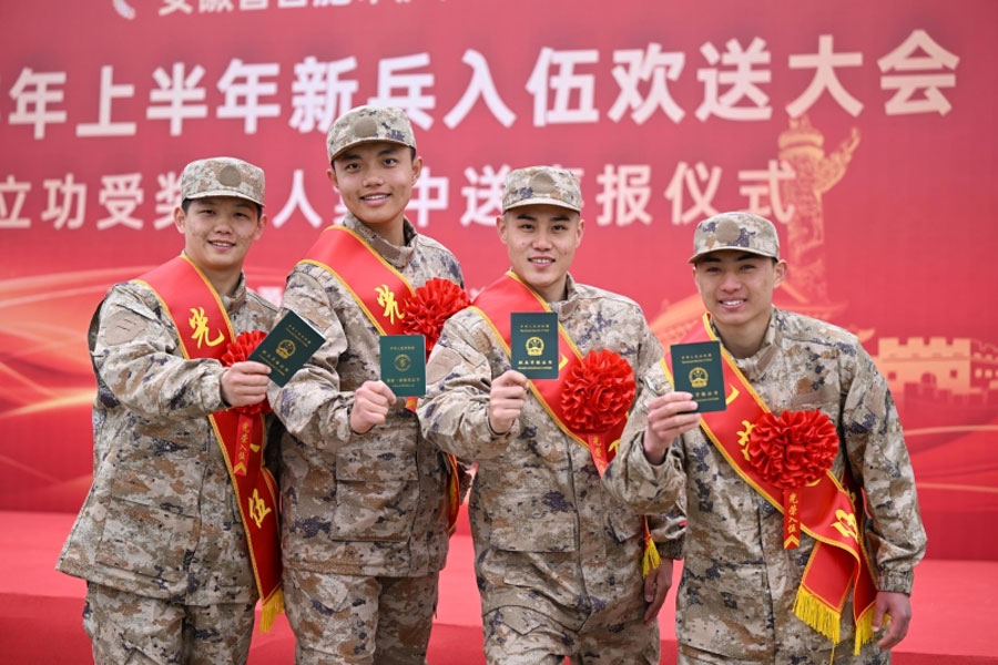 當(dāng)日,安徽省合肥市廬陽(yáng)區(qū)隆重舉行2025年上半年新兵入伍儀式歡送大會(huì)暨立功受獎(jiǎng)軍人集中送喜報(bào)儀式,即將奔赴軍營(yíng)的新兵身著迷彩戎裝,離開(kāi)家鄉(xiāng)告別親人,開(kāi)啟新的人生征途。(徐偉 孫勁 來(lái)路 記者 史睿雯)