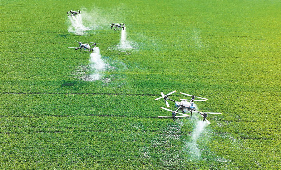 3月19日,在亳州市利辛縣胡集鎮張莊村麥田,工作人員操作無人機給小麥噴灑藥物(無人機照片)。目前,亳州各地正加強小麥田間管理,為豐收打基礎。通訊員 劉勤利 劉倩楠 攝