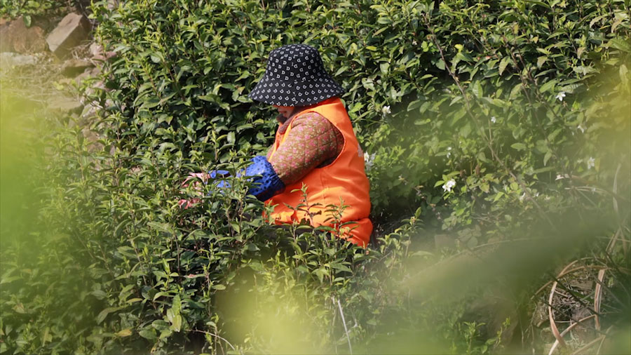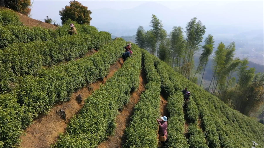 ??4月3日,宣城市旌德縣白地鎮(zhèn)的高山茶園上,茶農(nóng)們趁著晴好天氣抓緊采收春茶,現(xiàn)場一片繁忙景象。