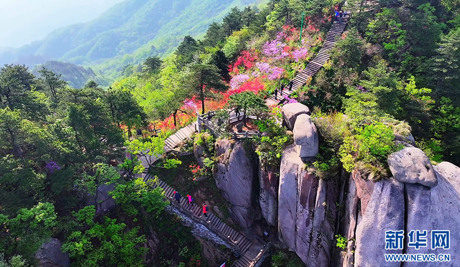 ??4月下旬起,安徽九華山風景區花臺景區迎來了一年中最絢麗的時節。景區內成片的高山杜鵑競相綻放,形成綿延千米的“天街花市”,吸引不少游客前來觀賞。據了解,花臺高山杜鵑的花期一般持續1個半月到2個月,“五一”假期前后達到最佳觀賞效果。(陳英杰 韓磊 攝)