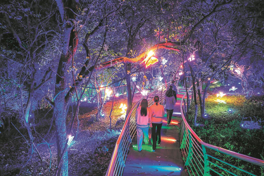 近日,游客在淮南八公山風景區參與集觀光打卡、互動體驗、文化影秀于一體的綜合夜游。記者 范柏文 攝