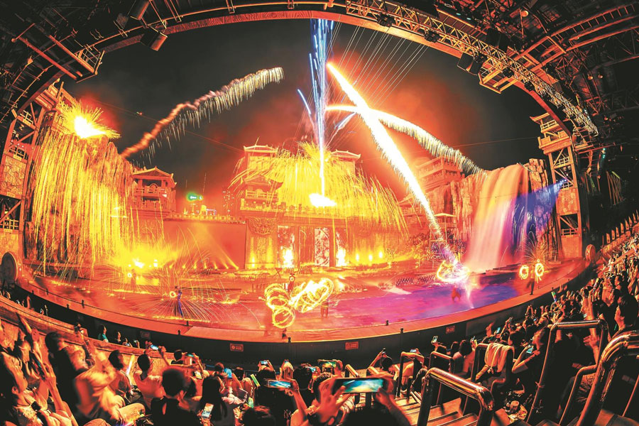 5月1日晚,合肥融創樂園里,游人在欣賞表演。通訊員 陳登余 攝
