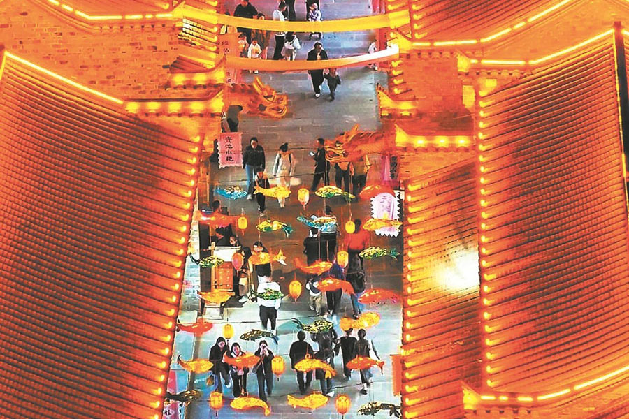 近日,在池州市貴池區馬衙街道儺仙鎮民俗文化街,游客欣賞夜景。通訊員 陳三虎 攝