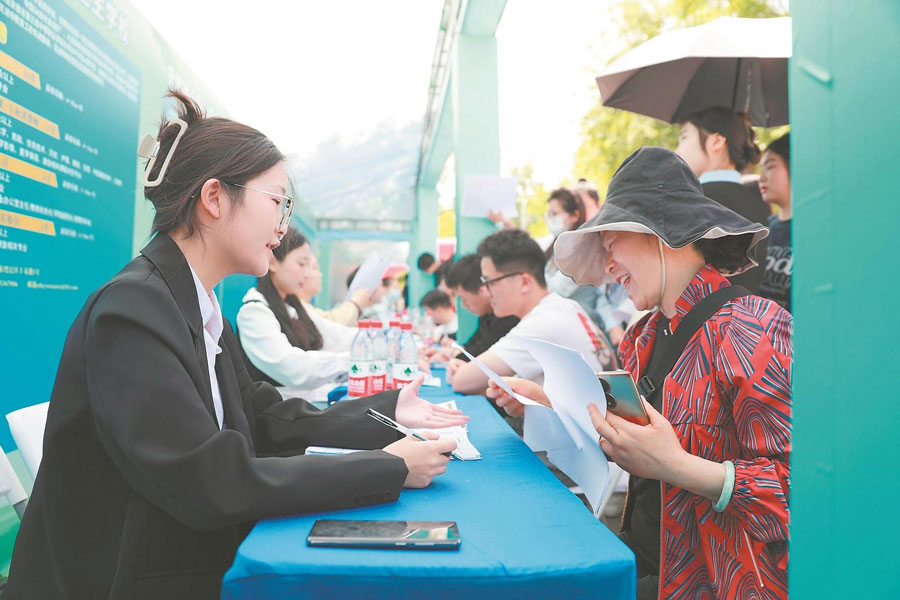 2025年4月26日,眾多求職者在安徽省蕪湖市神山公園“2025年蕪湖市菁英人才春季招聘會”現場求職。 通訊員 陳效寶 攝