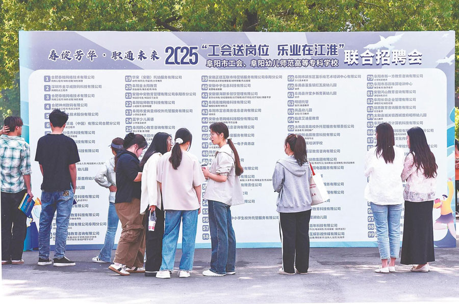 近日,阜陽市工會、阜陽幼兒師范高等專科學校聯合舉行招聘會,近百家用人單位提供3000余個崗位,吸引眾多應屆畢業生前來應聘。通訊員 盧啟建 攝