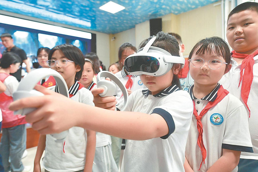 6月10日,在合肥市十里廟小學(xué),小學(xué)生在體驗(yàn)XR設(shè)備。當(dāng)天,“AI魔法世界”科普知識(shí)進(jìn)校園活動(dòng)走進(jìn)該校,學(xué)生通過XR設(shè)備等互動(dòng)體驗(yàn),沉浸式感受科技創(chuàng)新的獨(dú)特魅力。通訊員 葛宜年 攝