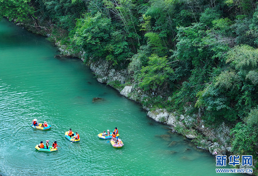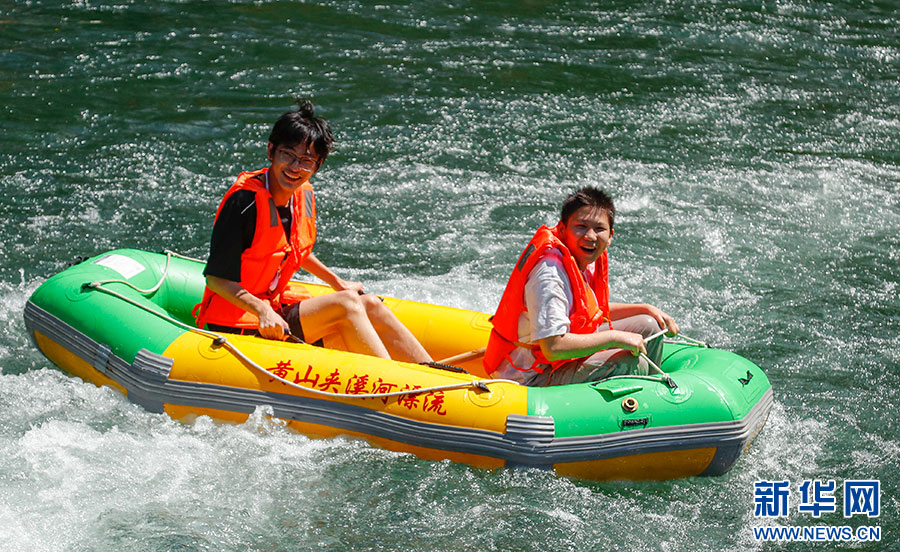 當日是小暑節氣,眾多游客來到安徽省黃山市休寧縣夾溪河體驗漂流,親水玩耍,暢享清涼。新華網發(施亞磊 攝)