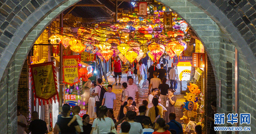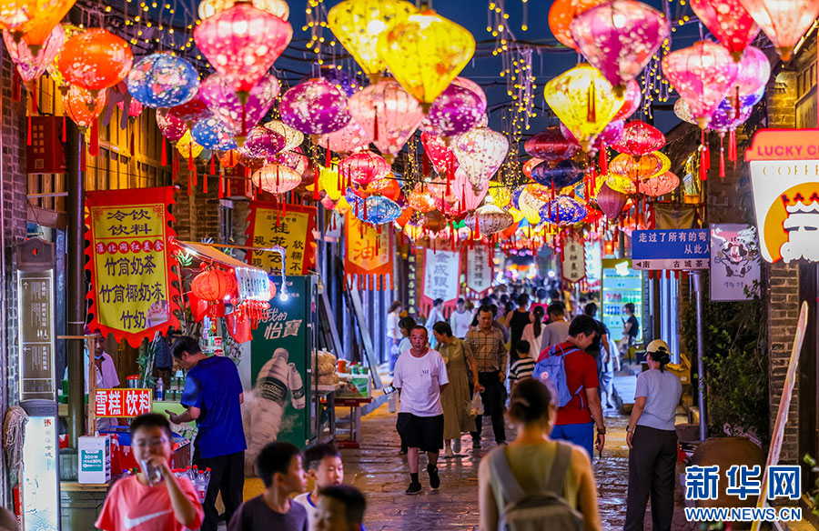 ??近年來,安徽省淮北市濉溪縣對古城石板街進行了整體提升改造,打造夜食、夜娛、夜購等場景,讓“夜經濟”持續升溫。進入暑期以來,石板街客流量攀升,多樣化消費場景釋放夏日經濟活力。新華網發(王文 攝)