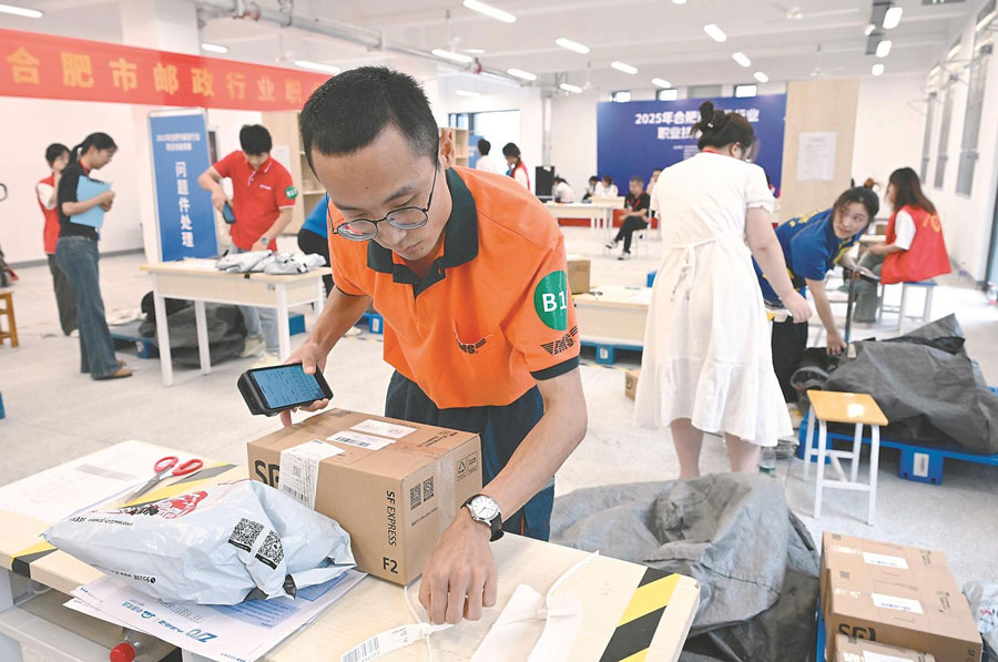 9月12日,2025年合肥市郵政行業職業技能競賽在安徽交通職業技術學院舉辦,79名參賽者進行了快遞員、快件處理員和快件安檢員三個工種的技能比武。本報記者 徐旻昊 攝
