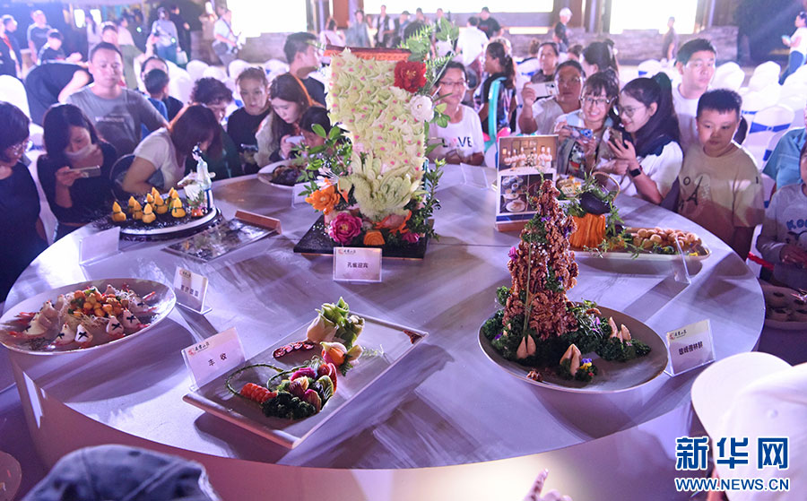 9月14日,市民在“超級皖”美食爭霸賽淮南城市戰隊選拔賽現場欣賞豆腐宴。