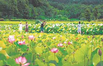 荷花盛開引客賞