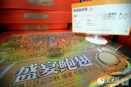 南昌中山路一商場內最貴一款月餅598元,不過銷售人員稱該月餅打半折銷售。 時雨攝