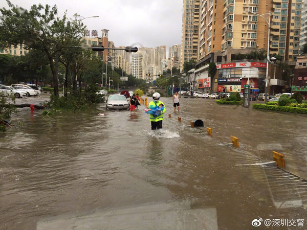 9月16日16點34分,深圳交警接到求助稱,深圳龍崗有一個小孩因腦炎肺炎導致高燒,在前往醫院的途中因路面30公分左右深的積水導致小車熄火無法前行。鐵騎隊員趕到現場后,立即給小朋友穿好雨衣跟著拖車師傅一起將小朋友送往醫院。在送往醫院途中路上,大樹被臺風掛到車輛無法通行,鐵騎和拖車師傅克服種種擋路情況,確保最短時間趕到醫院。
