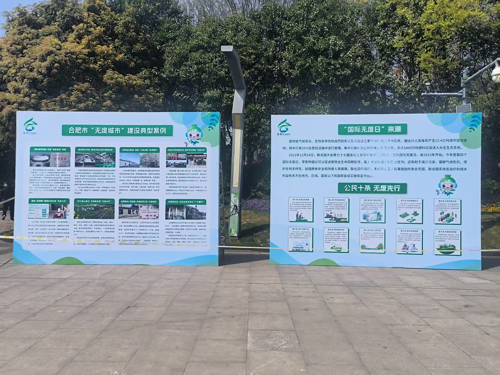 本次活動由廬陽區(qū)生態(tài)環(huán)境分局、廬州公園管理處具體承辦,旨在營造共創(chuàng)共建共享的良好氛圍,縱深推進“無廢城市”建設(shè)。主辦方通過播放科普視頻、設(shè)置主題展板等形式,生動解讀“無廢城市”理念與實踐。展板內(nèi)容涵蓋“國際無廢日”的來源、合肥市“無廢城市”典型案例、“公民十條 無廢先行” 以及“環(huán)保公益 變廢為寶”繪畫展等內(nèi)容,展現(xiàn)合肥市以“減量化、資源化、無害化”為核心,統(tǒng)籌推進固體廢物治理的成效。