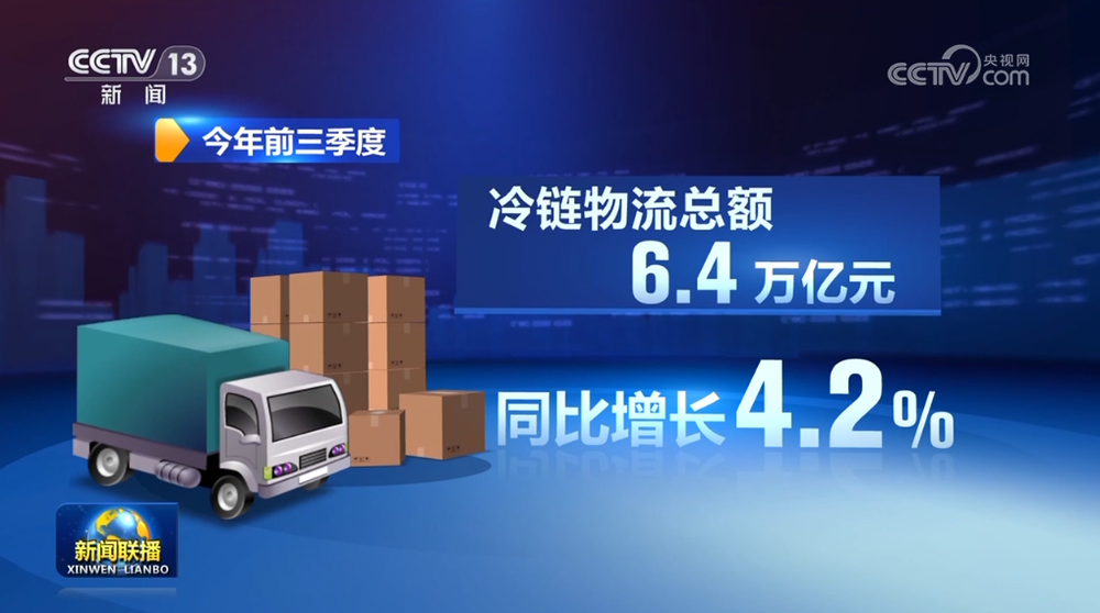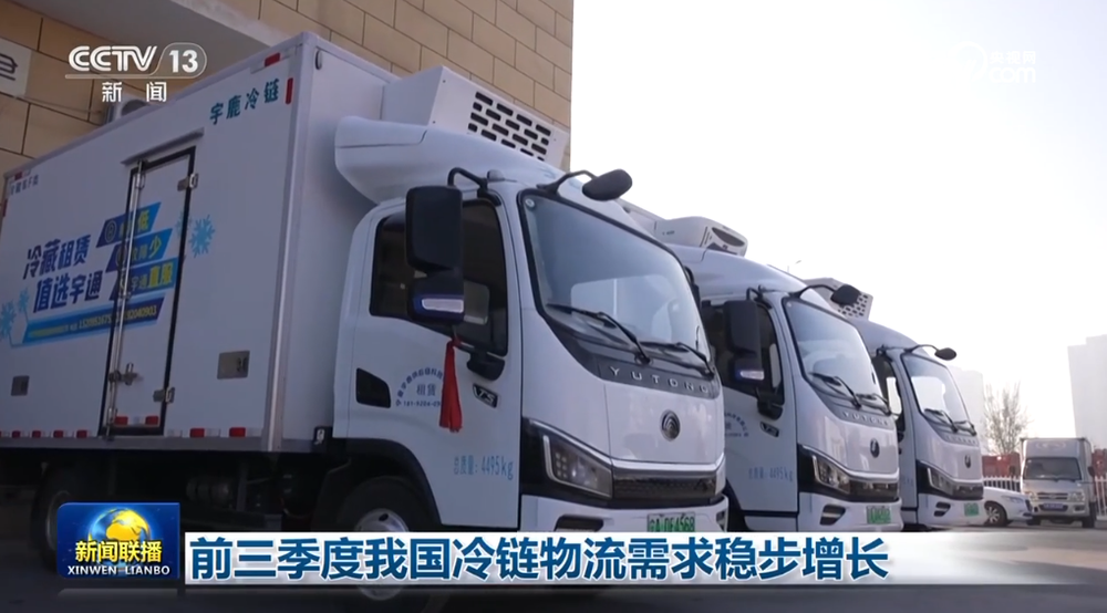 央視網消息:中國物流與采購聯合會發布的最新數據顯示,今年前三季度,我國冷鏈物流需求穩步增長,新能源冷藏車銷量同比增長超過200%。