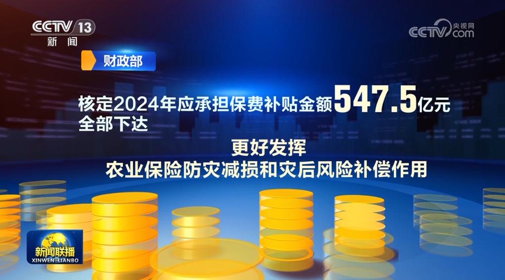 財政部日前下達2024年第二筆中央財政農業保險保費補貼預算71.4億元,加上此前已下達的476.1億元,核定2024年應承擔保費補貼金額547.5億元全部下達,更好發揮農業保險防災減損和災后風險補償作用。
