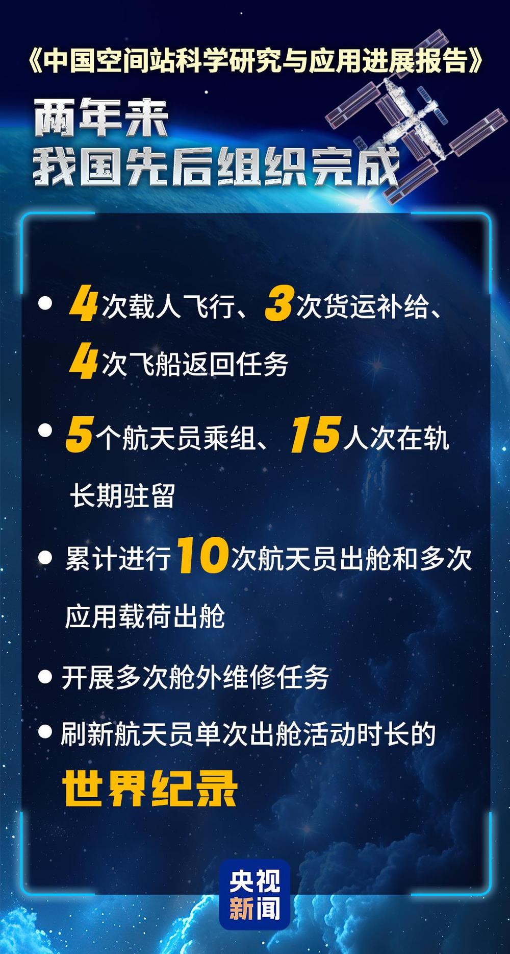 空間站全面建成,標志著我國成功構建起極具時代特征與中國特色的載人空間站大系統,標志著我國載人航天工程圓滿完成三步走戰略目標、進入空間站應用與發展新階段。兩年來,我國先后組織完成4次載人飛行、3次貨運補給、4次飛船返回任務,5個航天員乘組、15人次在軌長期駐留,累計進行10次航天員出艙和多次應用載荷出艙,開展多次艙外維修任務,刷新航天員單次出艙活動時長的世界紀錄,完成包括2名港澳載荷專家的第四批預備航天員選拔、低成本貨物運輸系統擇優并啟動研制等工作。目前,中國空間站在軌運行穩定、效益發揮良好。