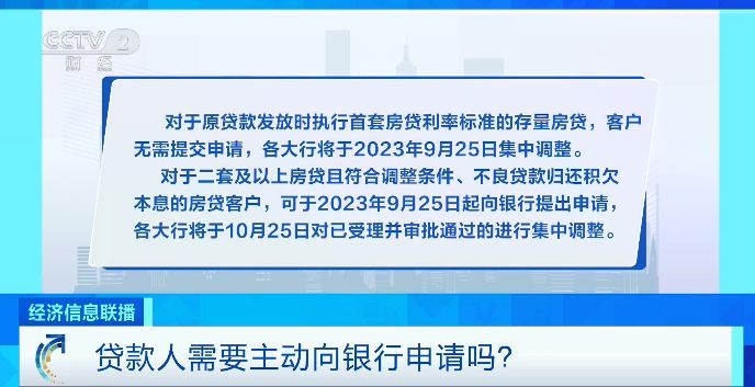 對于原貸款發放時執行首套房貸利率標準的存量房貸,客戶無需提交申請,各大行將于2023年9月25日集中調整。