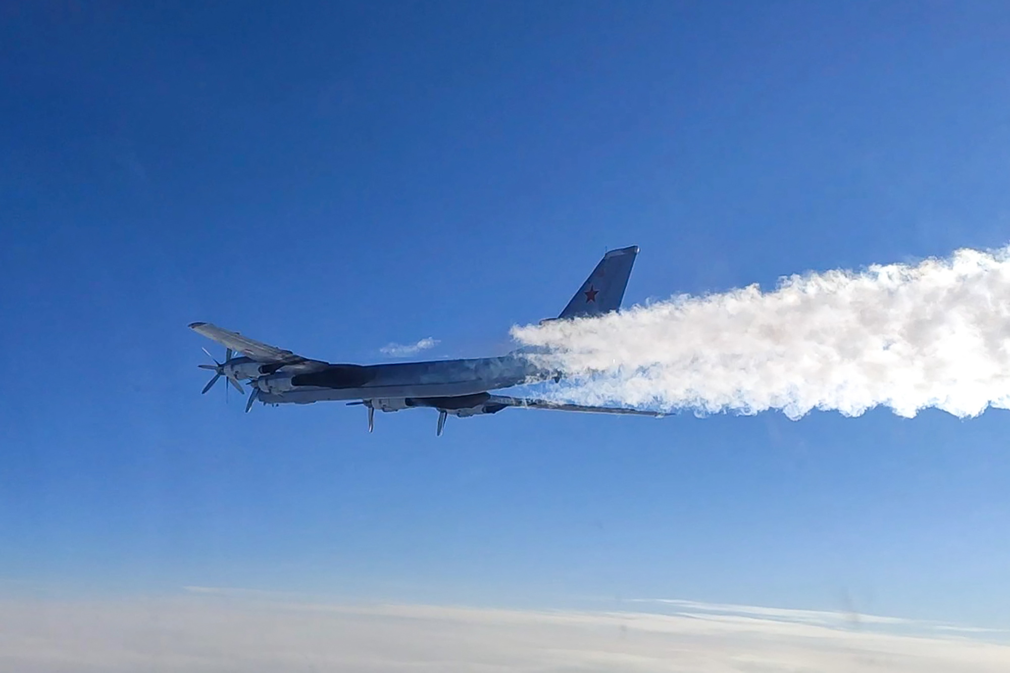 俄羅斯圖-95MS戰略轟炸機飛越中立水域。(資料圖)
