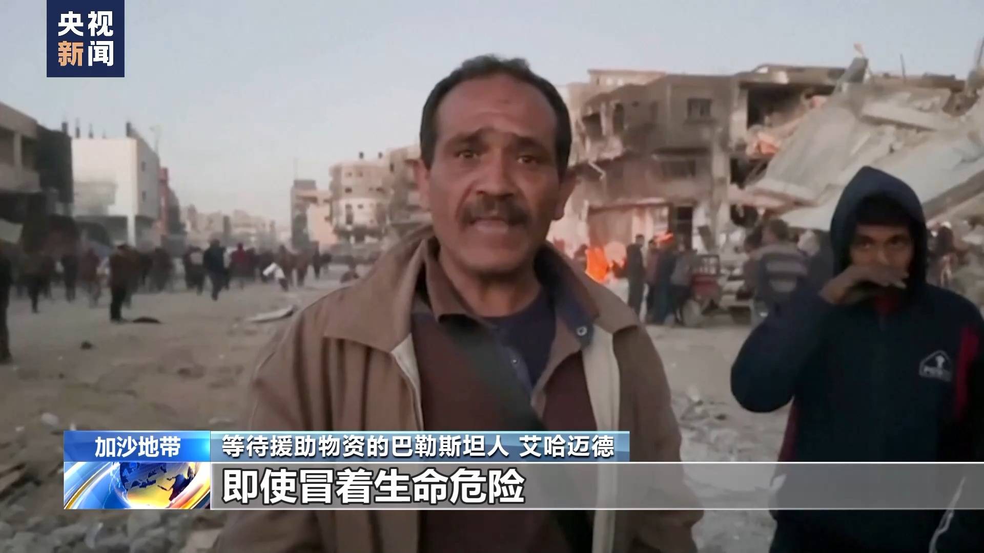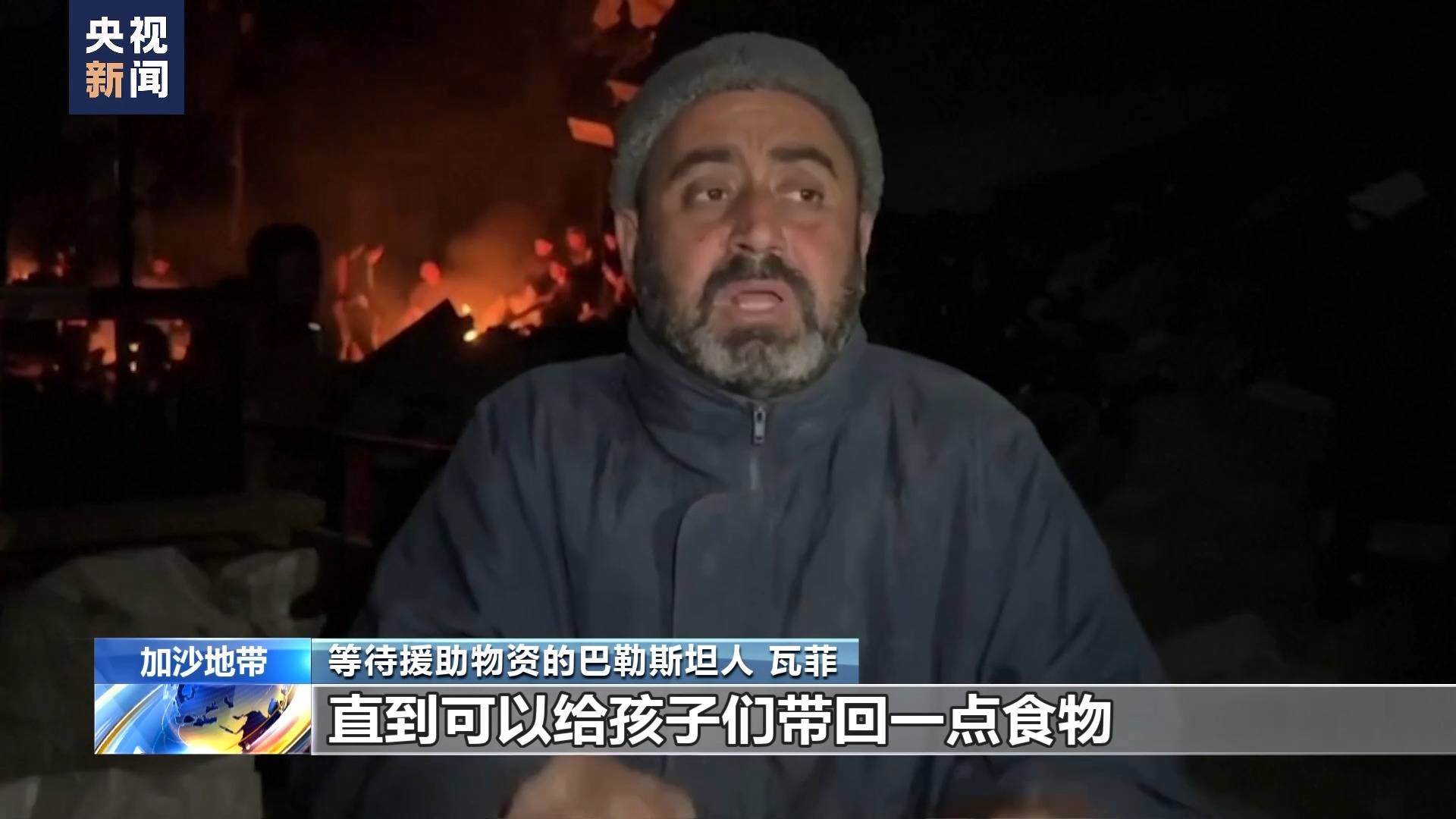 等待援助物資的巴勒斯坦人 瓦菲:我們來這里,在這里等待,直到可以給孩子們帶回一點(diǎn)食物,我們只想要面餅,這是最基本的生活必需品。面餅就可以,其他的不奢望了。