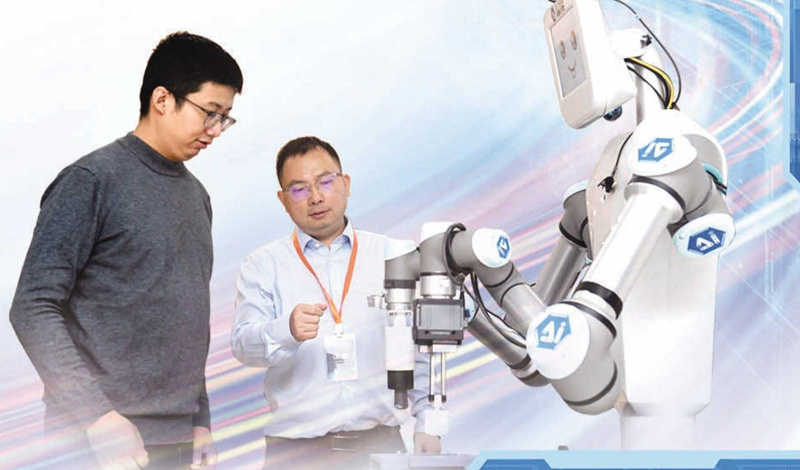 日前,中國科學技術大學教授江俊(右)與同事研討機器化學家小臨的技術攻關。(資料圖片)記者 徐旻昊 攝 日前,第一屆智能科學與技術論壇在合肥舉辦。 而前不久,中國智能機器人生態大會暨中國人工智能學會智能決策專委會成立大會同樣...