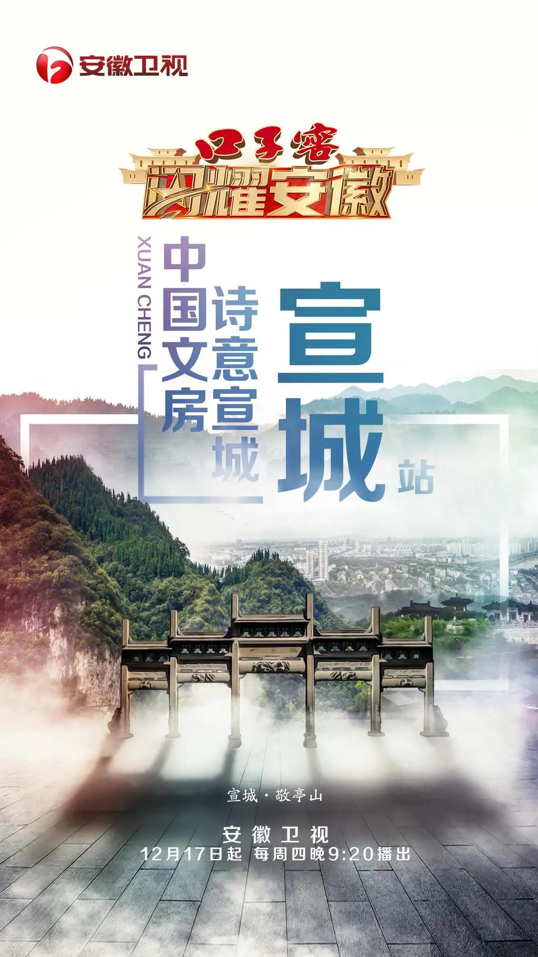 原創紀實尋訪節目口子窖《閃耀安徽》將于今晚9:20(12月17日)在安徽衛視播出,在首期節目中,主持人周群和馬瀅將來到美麗的宣城,共同探訪這座城市的人文精神和獨特魅力。